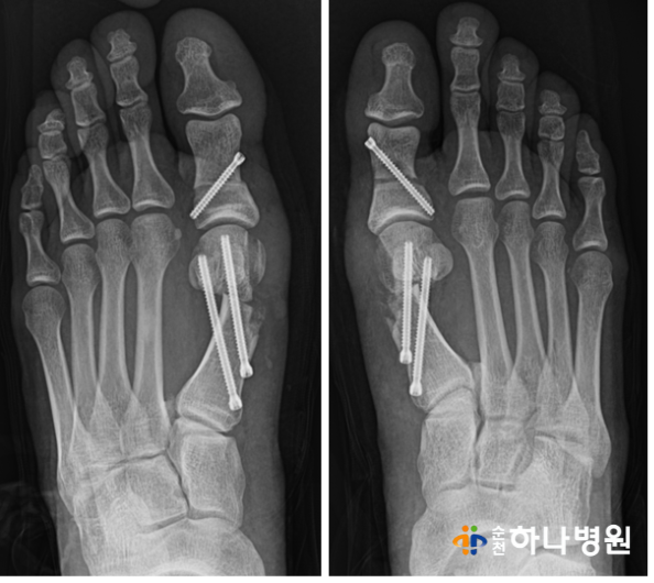 무지외반증 수술 후 각도 확인 결과